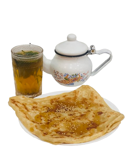 Une galette de Msemen au miel à déguster avec un thé à la menthe fraîche