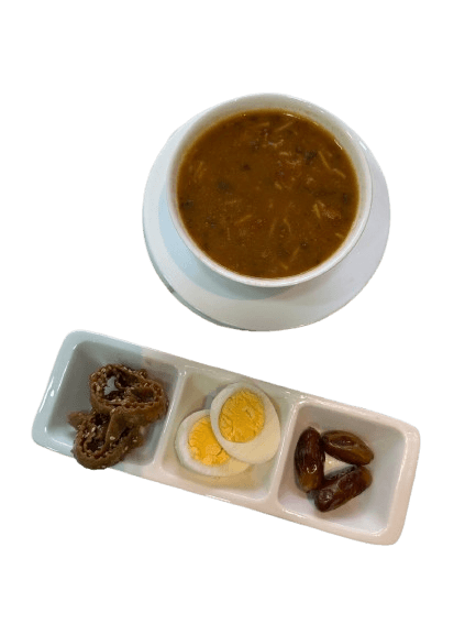 Soupe marocaine accompagné de dattes, Chabakia et œuf dur