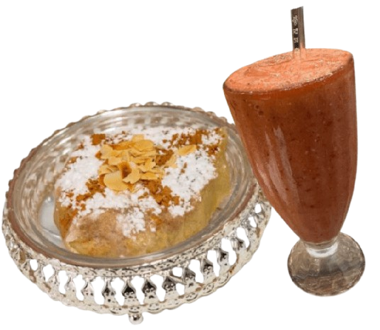 Sucré salé, la pastilla au poulet et aux amandes accompagnée d’un jus de fruits frais fait maison
